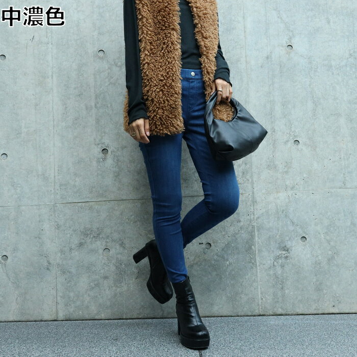 【スタイリング】スキニーパンツとしてもちろんそのままでも良し、レギンス感覚で丈の長いシャツやチュニック、ワンピース等と合わせたレイヤードスタイルにも良し。